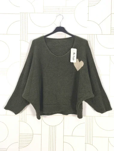 Pull coeur doré - Kaki