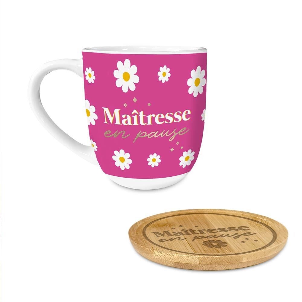 Coffret tasse et sous tasse " Maîtresse en pause ! "