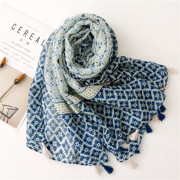 Foulard imprimé carreaux de ciments - Bleu - JL08